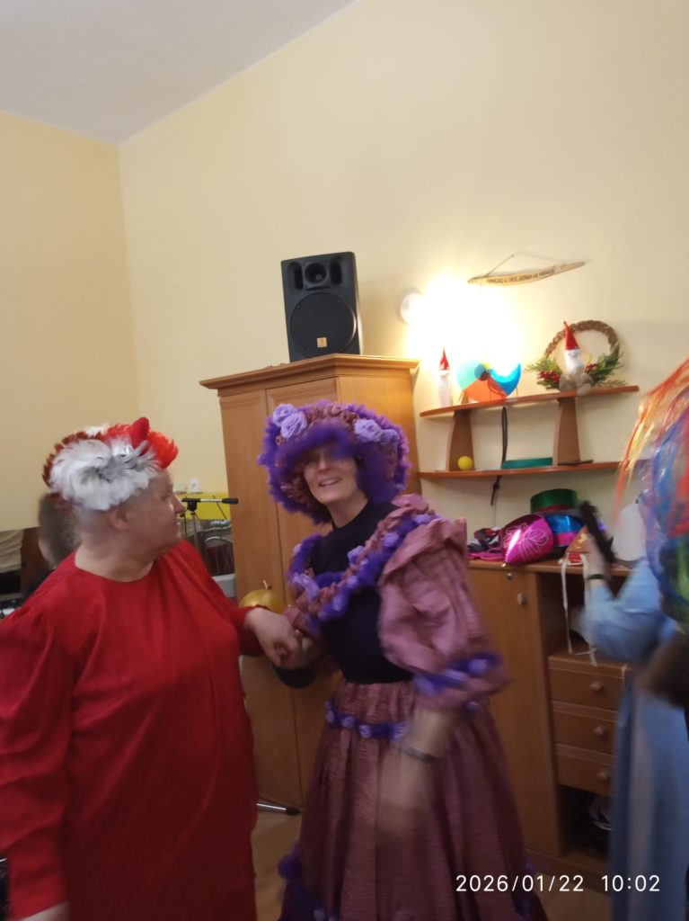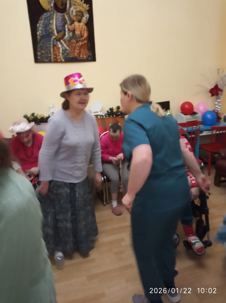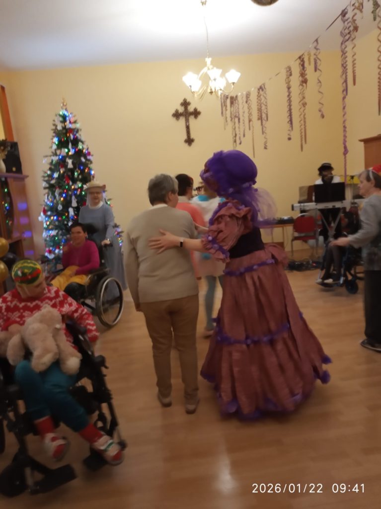 W dni 22.01.2026 r w naszym Domu odbył się bal karnawałowy zorganizowany przez P. Alę i P. Mariusza K. W zabawie brały udział i pomocą wspierały P. Weronika i , siostry i opiekunki . Podczas balu organizowane były zabawy . Mieszkanki z radością włączały się do wspólnej zabawy .Wyrażamy wdzięczność wszystkim za zorganizowanie balu.