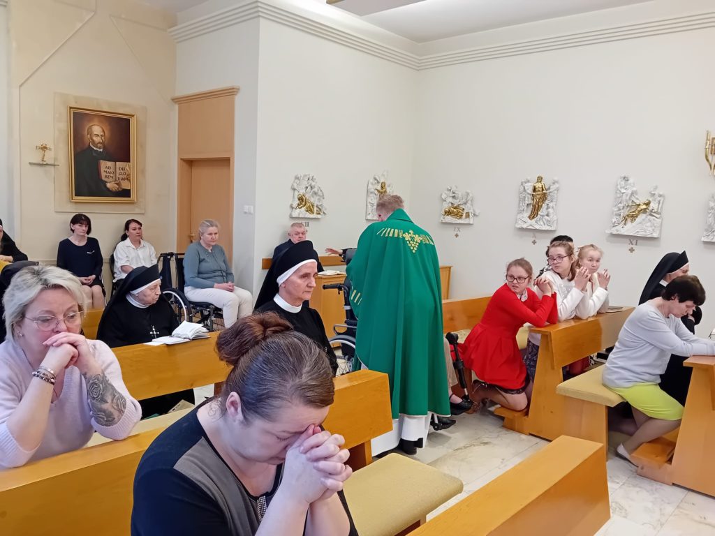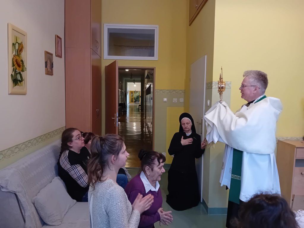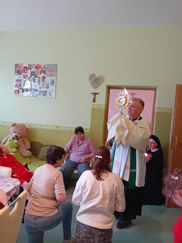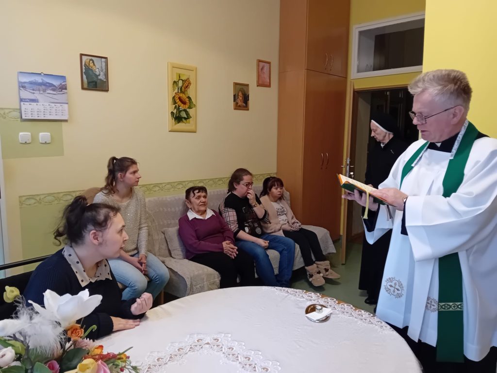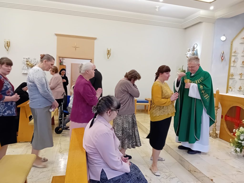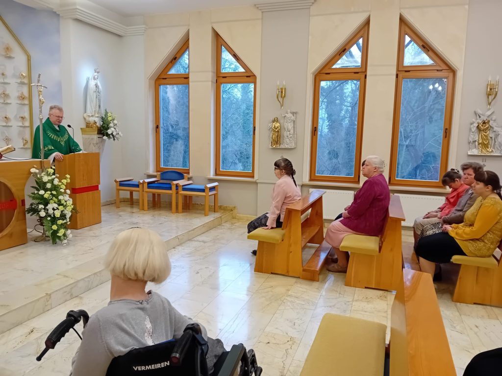 11 lutego w Światowy Dzień Chorego mieszkanki wraz z opiekunkami zebrały się na uroczystej Mszy św. w naszej Kaplicy, którą sprawował O. Sławomir ze Zgromadzenia OMI. Dzień ten jest dniem szczególnym w naszym Domu ze względu na jego charakter. Mieszkanki otrzymały również błogosławieństwo Najświętszym Sakramentem oraz Sakrament Namaszczenia.