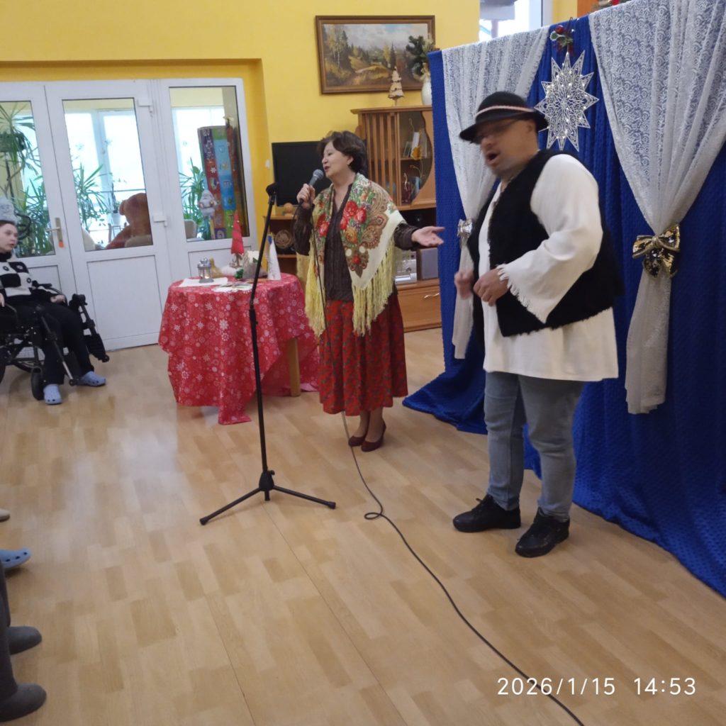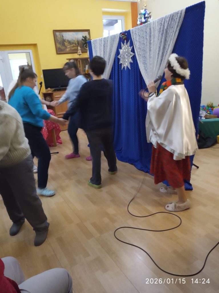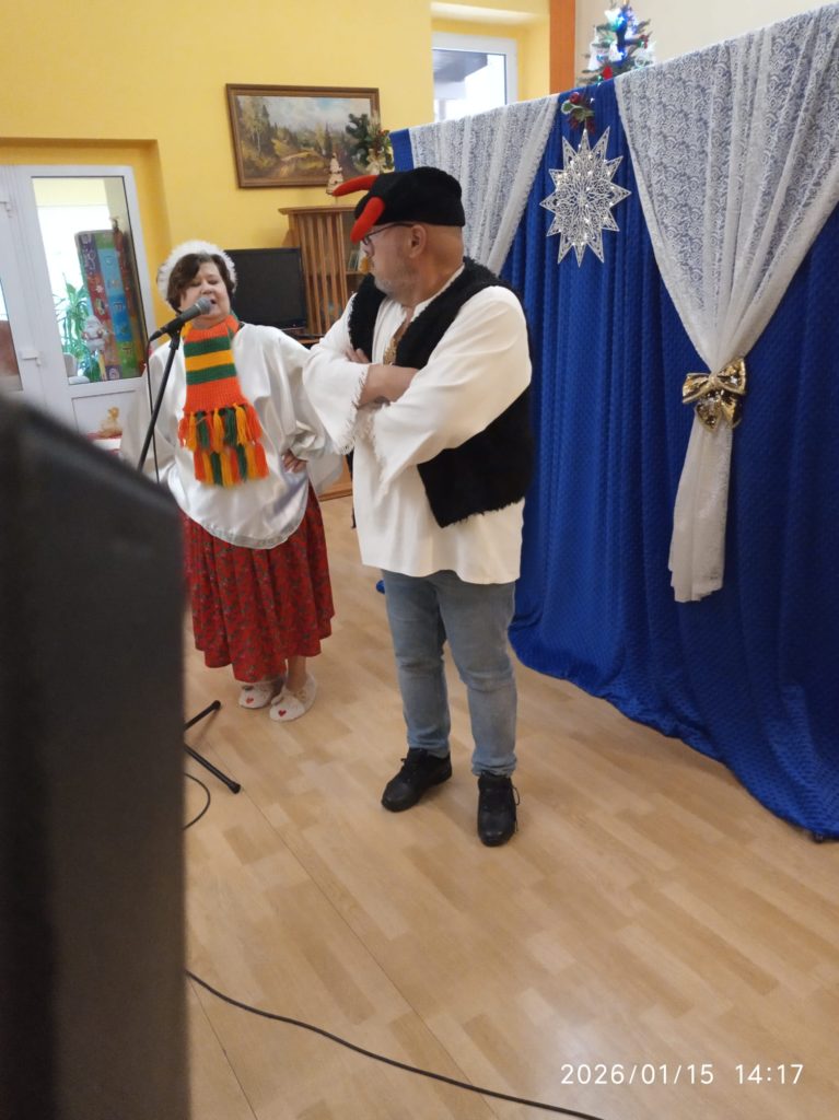 Dnia 13.01.2026 r. w naszym Domu zagościł teatrzyk z Wieliczki z przedstawieniem „ Opowieść Wigilijna „.Spektakl opowiadał historię pewnego dziadka , który nie lubił świąt , ale dzięki swojej wnuczce odkrył wartość świąt. Mieszkanki mocno przeżywały historię dziadka