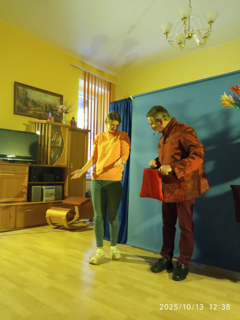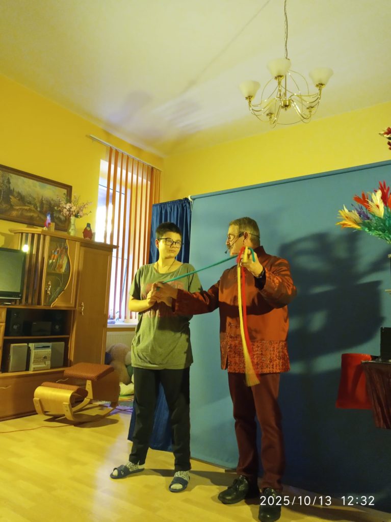 Tym razem artysta z Zielonej Góry 13.10.2025r. Przedstawił naszym Mieszkankom swiat baśni i magii. Bylo dużo radości i wspólnej zabawy